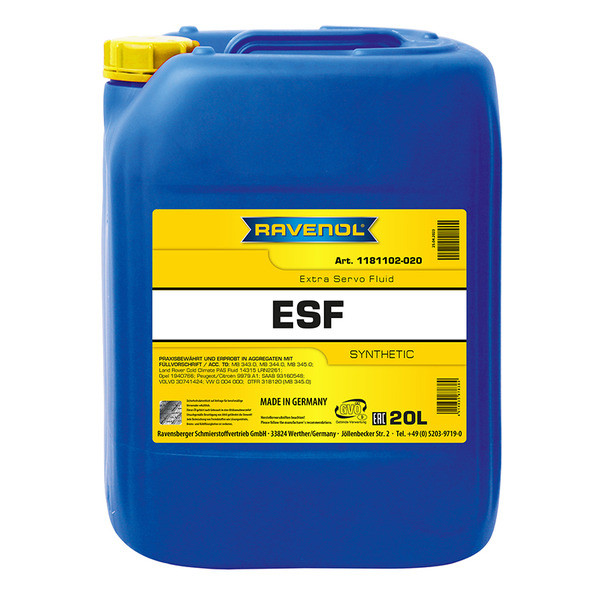 RAVENOL ESF Extra Servo Fluid has an optimal performance behaviour as central hydraulic oil in power steering, rear axle steering, level control, hydro pneumatic suspension, shock absorbers, for active damping and engine protection, for hydrostatic drive of fan, alternator and air conditioning, for stability and traction systems (ABS/ASR/ASC), central locking, electro-hydraulic convertible top control, hydraulic brake booster and hydro pneumatic suspension for VW, Audi, Seat, Skoda. Especially to be used in cold countries.