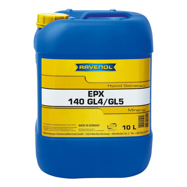 RAVENOL Getriebeoel EPX SAE 140 GL4/GL-5 is a lubricating oil for mechanical transmissions based on high quality base oils and additives that are a balanced combination of active ingredients. Special high-pressure (EP) agents and other additives offer excellent wear protection even under severe operating conditions.